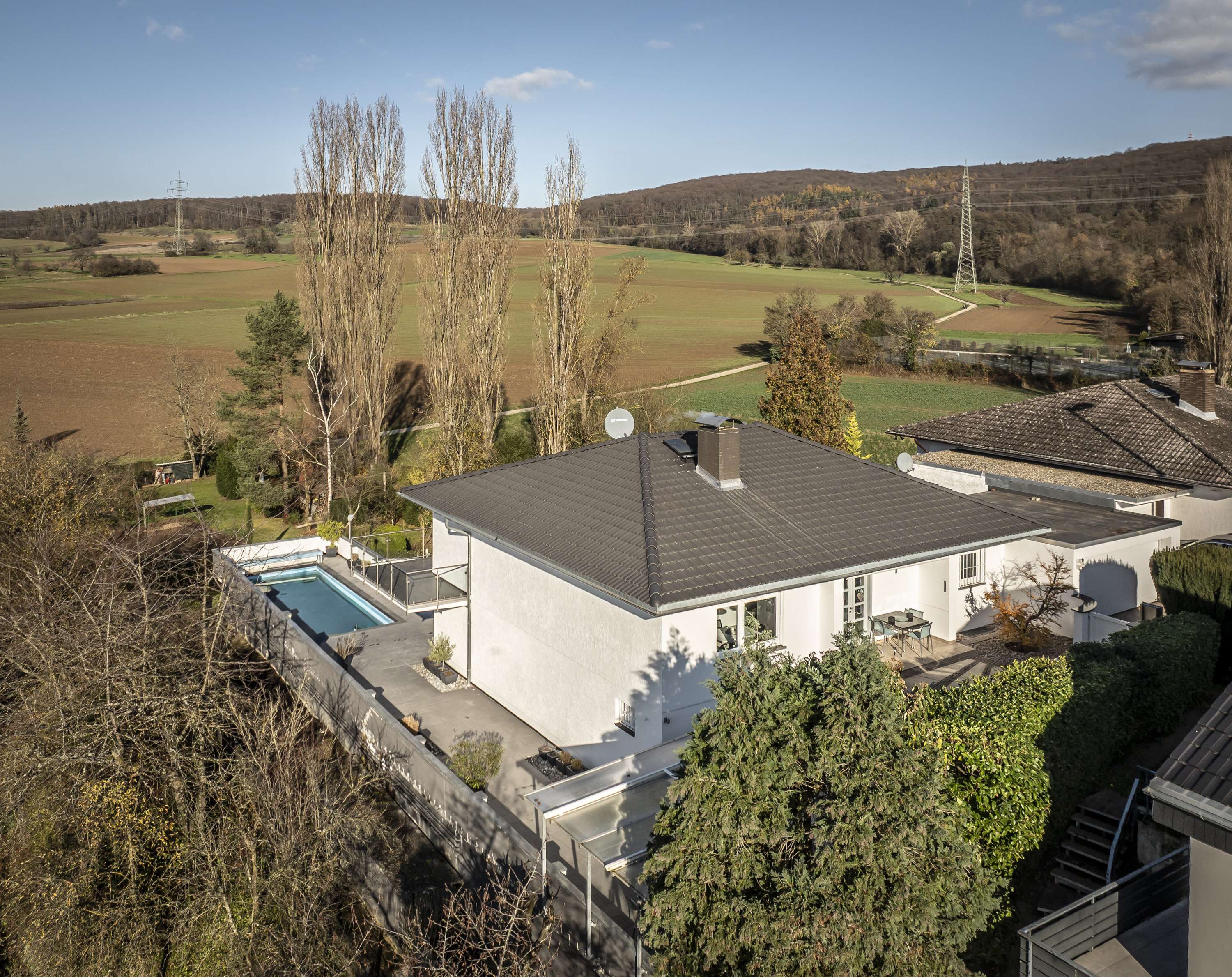 ✓ Ruhige Lage direkt am Feld in einem Wendehammer ✓ Unverbaubarer Blick ins Grüne ✓ Beheizter Pool (10m x 4m) mit neuwertiger Filteranlage ✓ Hochwertige Einbauküche mit Gaggenau-Geräten und Kücheninsel ✓ Doppelgarage ✓ Großer Balkon ✓ Schöne Terrasse und Garten ✓ Überdachter Terrassenbereich mit Außenkamin ✓ Neue ÖL-Heizung aus 2020 ✓ Deckendämmung ✓ Außenrollläden ✓ Elektrische Sonnenmarkisen ✓ Wertsteigerungsperspektive durch bebaubares Grundstück ✓ 15,00 m² Anbau als Technik- oder Hobbyraum ✓ Tageslichtbad mit Badewanne & bodentiefer Dusche ✓ und, und, und…