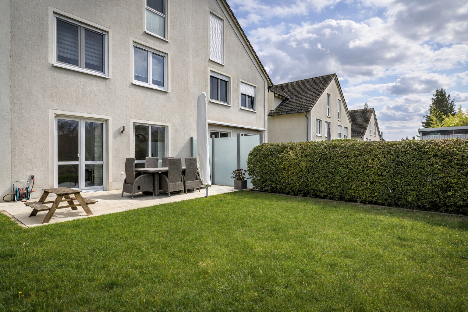 Diese Doppelhaushälfte verbindet komfortables Wohnen, praktische Raumaufteilung und eine attraktive Lage in einem beliebten Wiesbadener Stadtteil – ideal für Familien, die ein ruhiges Zuhause mit guter Anbindung suchen. Mit einer Wohnfläche von ca. 137,48 m², zusätzlicher Nutzfläche von ca. 46,54 m² sowie einem 204,00 m² großen Grundstück bietet das Haus viel Raum für komfortables Wohnen auf drei Etagen. Bereits beim Betreten des Hauses erwartet Sie ein einladender Eingangsbereich mit Gäste-WC. Das Herzstück des Erdgeschosses bildet der großzügige Wohn- und Essbereich mit offener Einbauküche, der durch seine offene Gestaltung eine angenehme Wohnatmosphäre schafft. Große Fensterflächen sorgen für viel Tageslicht und bieten direkten Zugang zur Terrasse und in den schönen, privaten Garten hinter dem Haus. Im Obergeschoss befinden sich mehrere gut geschnittene Schlafzimmer, die sich flexibel als Kinder-, Arbeits- oder Gästezimmer nutzen lassen. Die Tageslichtbäder sorgen mit natürlichem Licht und angenehmer Atmosphäre für zusätzlichen Wohnkomfort. Insgesamt stehen vier Schlafzimmer, zwei Badezimmer sowie ein Gäste-WC zur Verfügung, wodurch sich das Haus ideal für Familien oder Paare mit Platzbedarf eignet. Das Haus ist voll unterkellert und bietet dort zusätzliche Nutz- und Abstellflächen. Auch im Außenbereich überzeugt die Immobilie. Neben dem gepflegten Garten stehen Ihnen ein Carport sowie ein zusätzlicher Außenstellplatz direkt am Haus zur Verfügung.