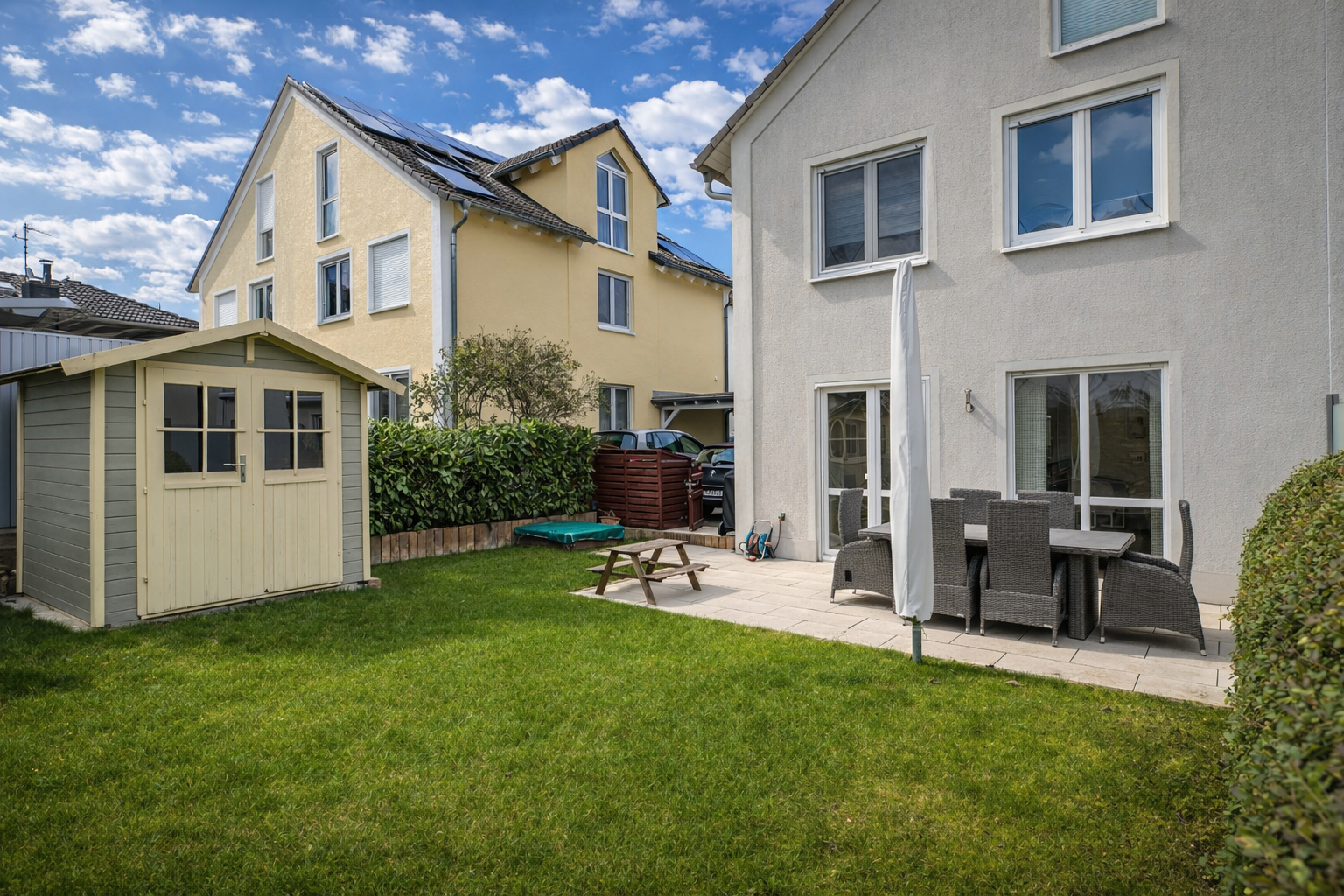 - gepflegter Garten mit gepflasterter Terrasse & Gartenhaus hinter dem Haus - Carport + Außenstellplatz unmittelbar am Haus - Tageslichtbäder mit Dusche und Badewanne - vollunterkellert - Gäste-WC - offene Einbauküche - sehr gute Anbindungen in alle Richtungen - ruhige Wohngegend - ideal für Paare & Familien und, und, und…