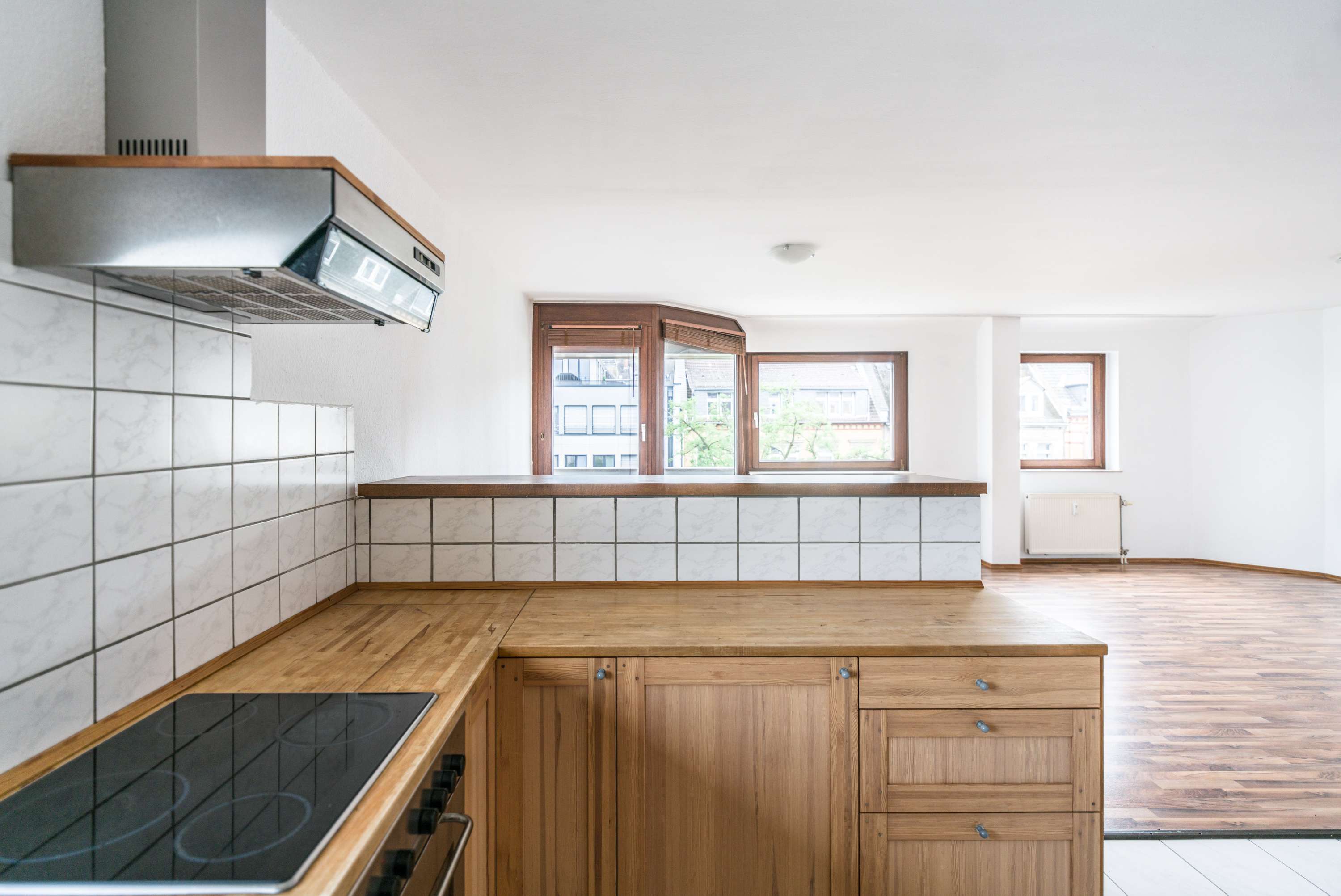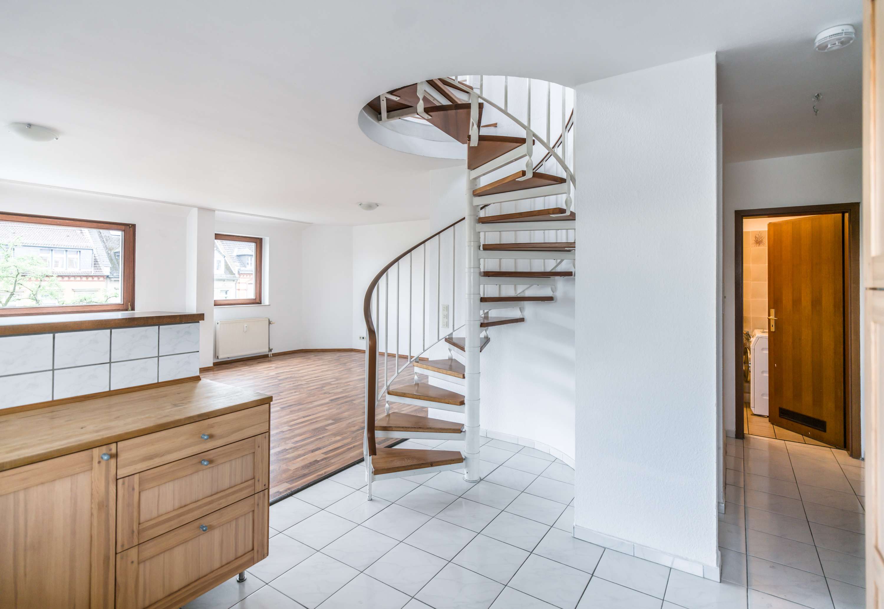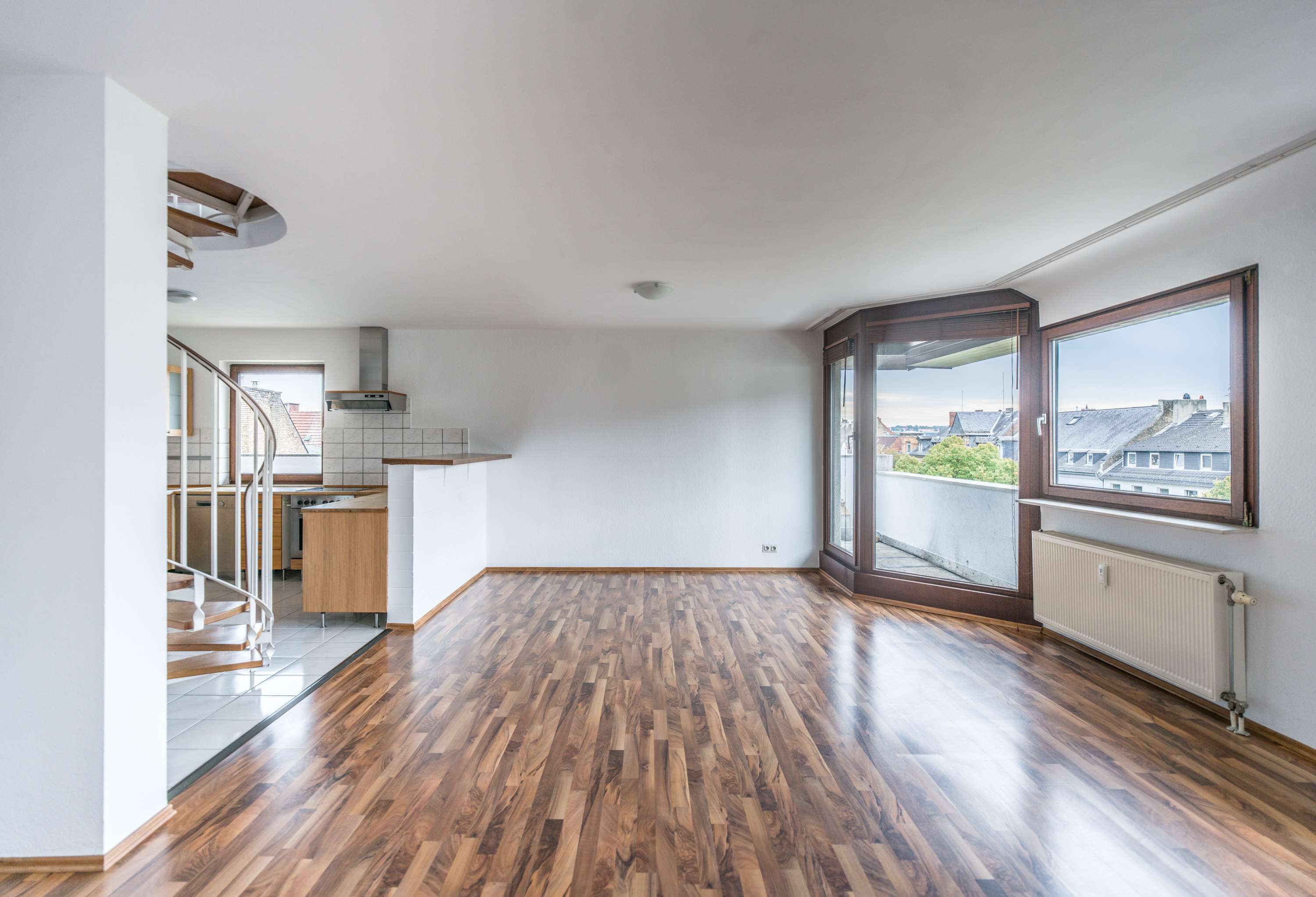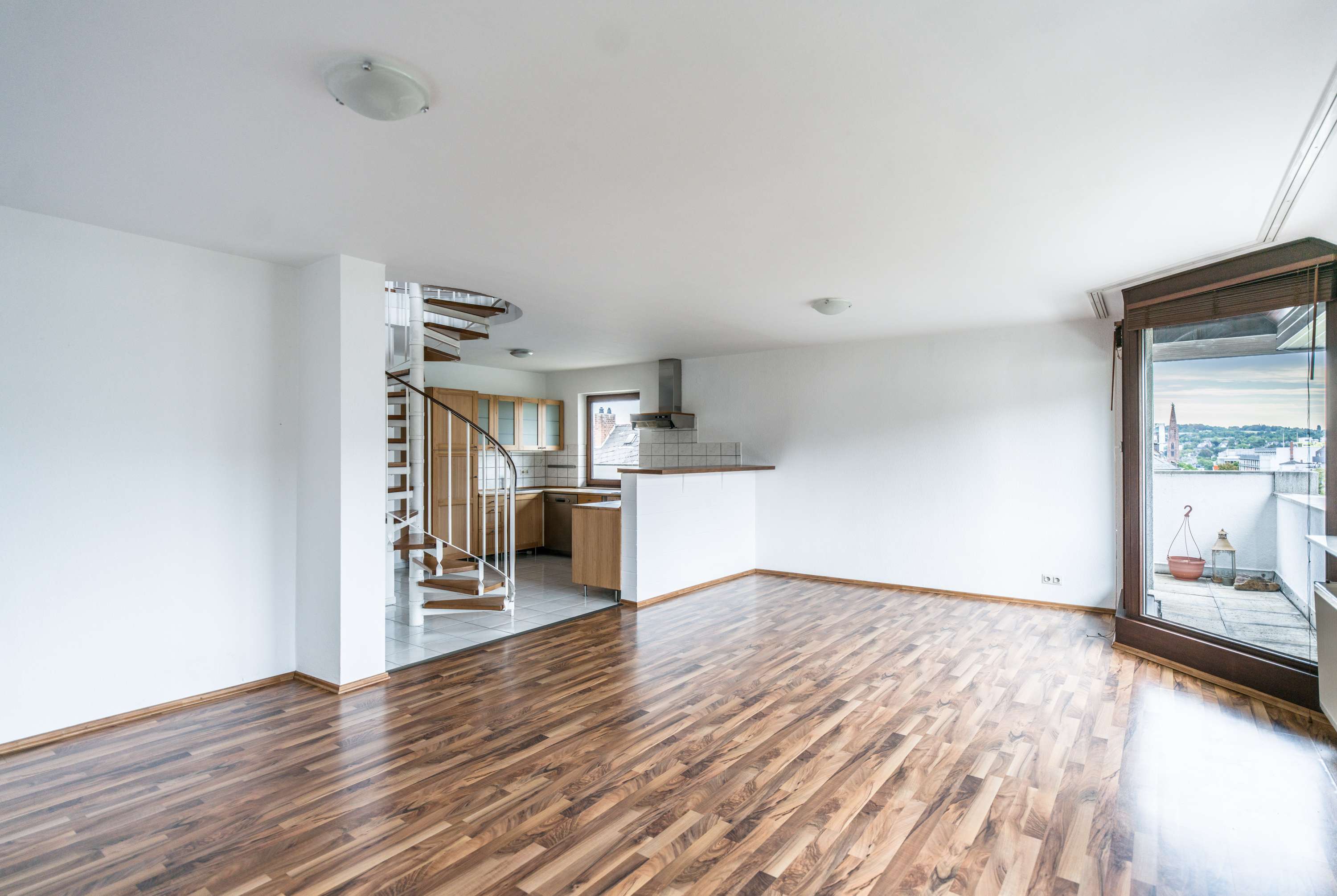 Diese 3-Zimmer-Maisonette/Penthouse-Wohnung befindet sich in zentraler Lage mitten in der Wiesbadener Innenstadt und bietet auf ca. 105,00 m² Wohnkomfort über zwei Ebenen. Der großzügige Wohn- und Essbereich überzeugt mit viel Tageslicht, einer offenen Einbauküche inklusive Breakfast-Bar sowie einer durchdachten Raumaufteilung. Zwei Schlafzimmer und zwei voll ausgestattete Bäder bieten optimale Bedingungen für Paare, Familien oder Singles. Ein besonderes Highlight ist die große Dachterrasse mit herrlichem Blick über die Stadt, ergänzt durch eine zusätzliche Loggia, die zu entspannten Stunden im Freien einladen. Praktische Extras wie ein Duplex-Stellplatz, ein Abstellraum sowie ein Lift sorgen für zusätzlichen Komfort.