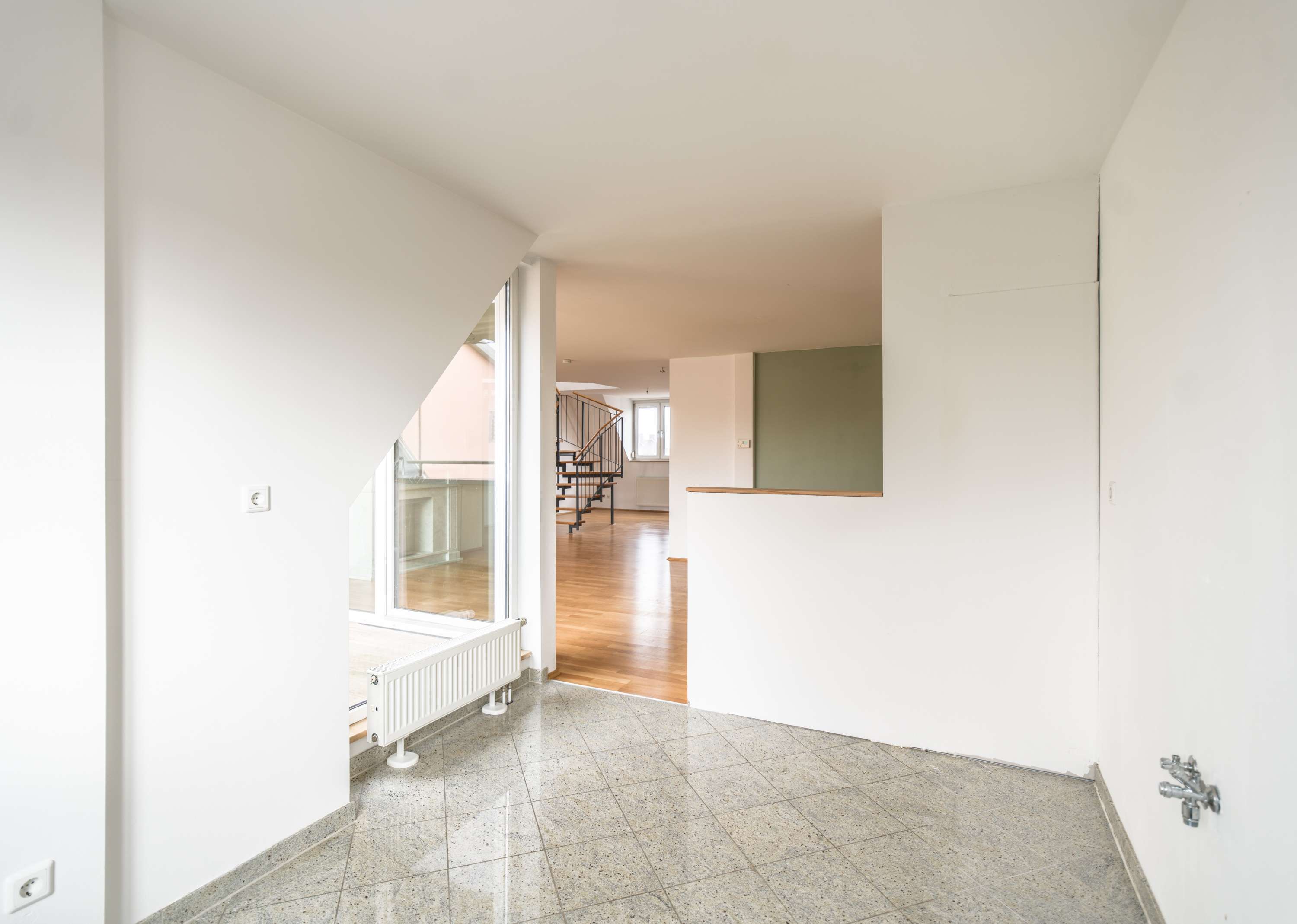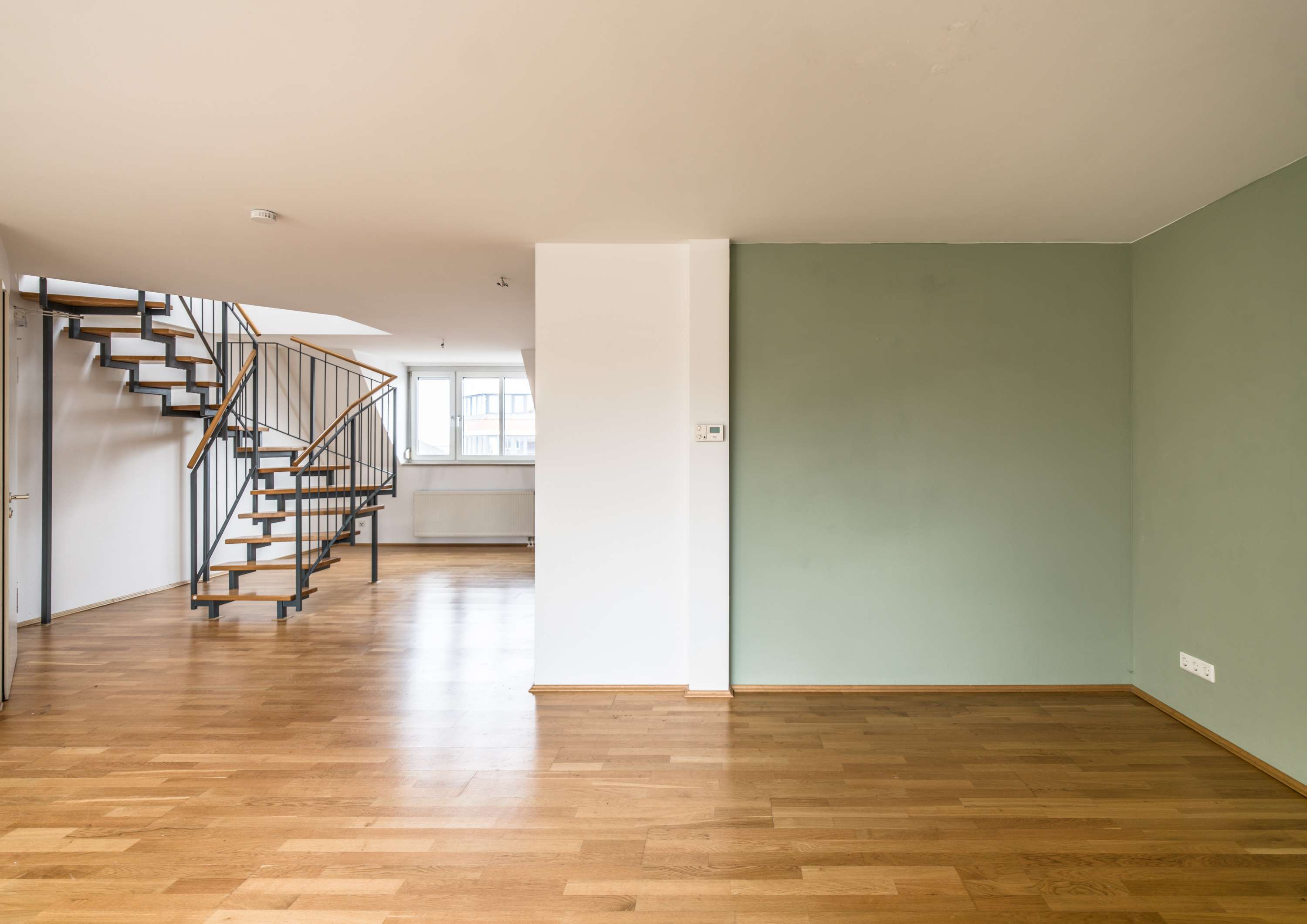 Die 3-Zimmer-Wohnung überzeugt mit einer optimalen Raumaufteilung und der besonderen Wohnqualität einer Maisonette. Durch ihre moderne Gestaltung verbindet sie auf eindrucksvolle Weise urbanes Leben mit zeitgemäßem Wohnkomfort. Der Ausblick in den ruhigen Innenhof, der einer gepflegten Parkanlage gleicht und 2006 für seine vorbildliche Gestaltung ausgezeichnet wurde, schafft eine grüne Oase inmitten der Stadt.
