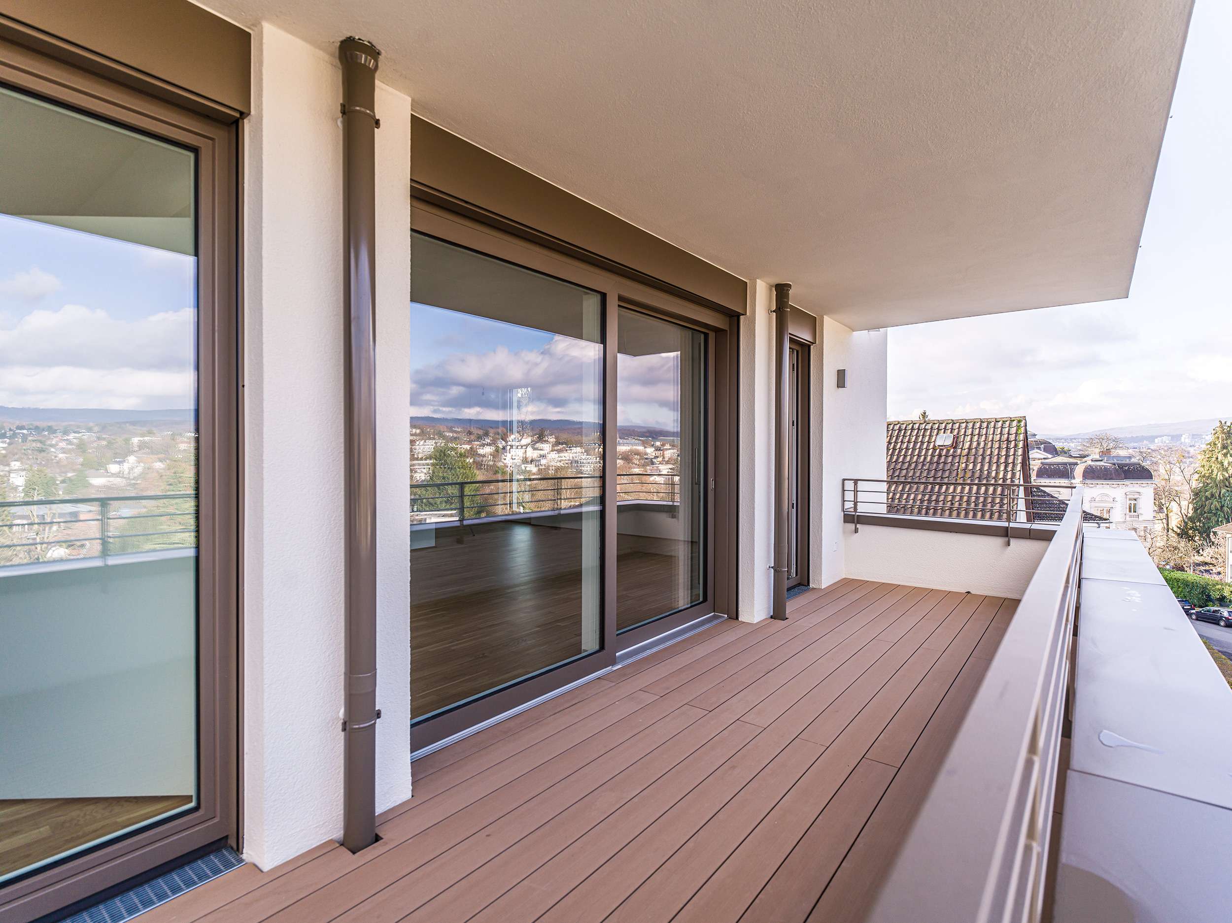 Das absolute Highlight dieser Penthouse-Wohnung sind die insgesamt 4 Terrassen sowie 5 Austritte rund um das Gebäude mit Blick in alle Richtungen.