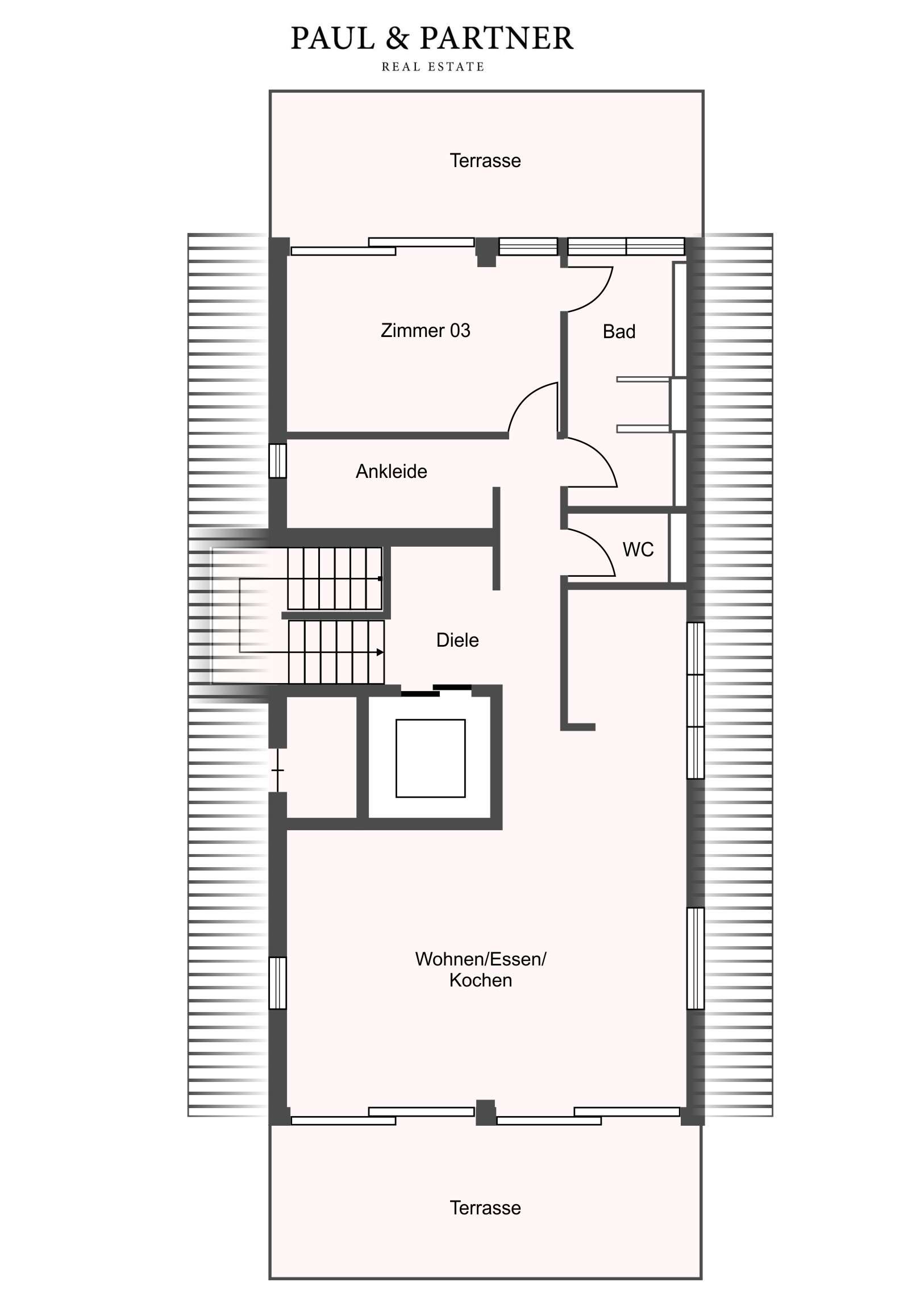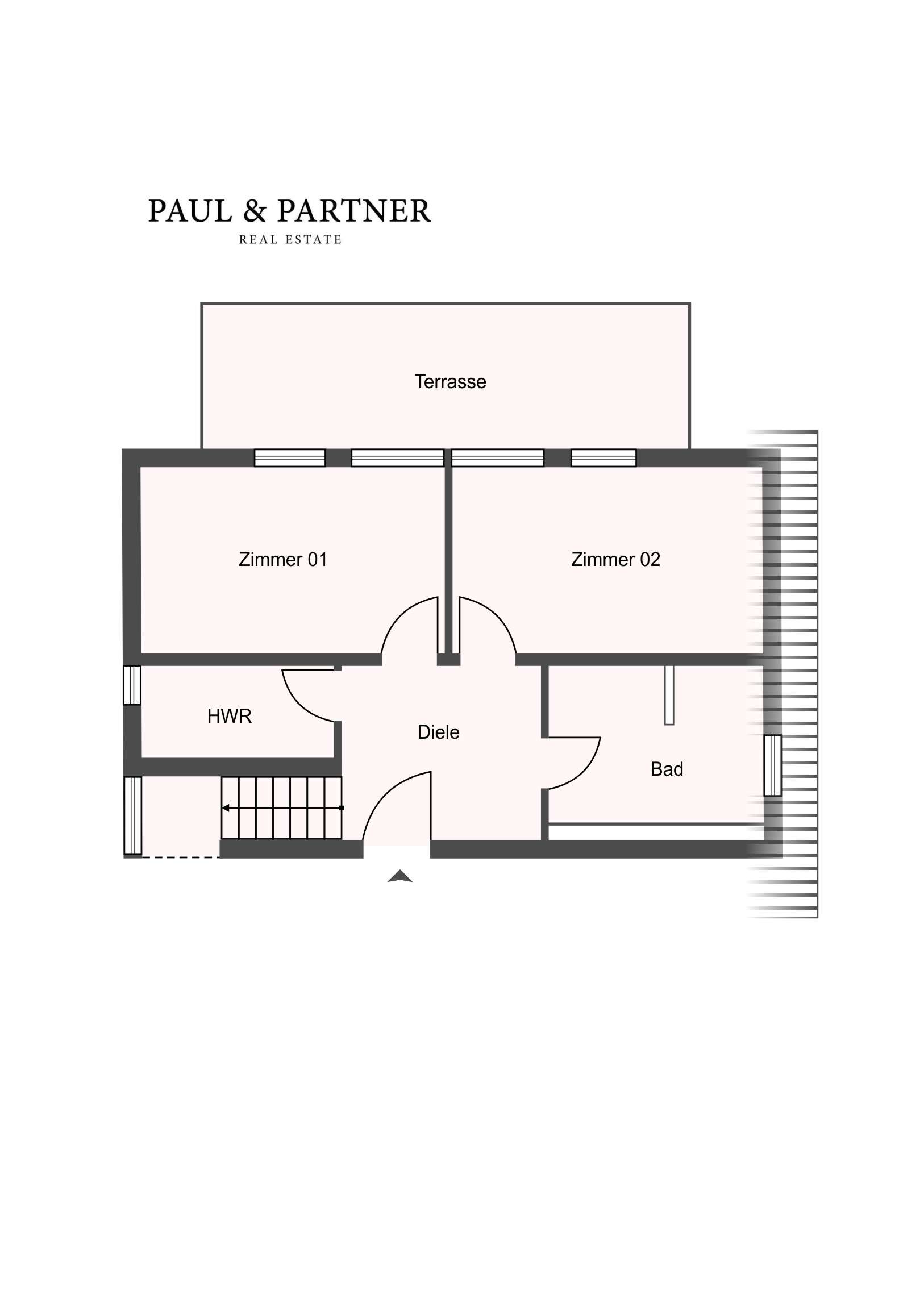 Alle Angaben sind ohne Gewähr und basieren ausschließlich auf Informationen, die uns von unserem Auftraggeber übermittelt wurden. Wir übernehmen keine Gewähr für die Vollständigkeit, Richtigkeit und Aktualität dieser Angaben. Zwischenvermietung bleibt vorbehalten. Sollte das von uns nachgewiesene Objekt bereits bekannt sein, teilen Sie uns dieses bitte unverzüglich mit. Im Übrigen gelten die beigefügten allgemeinen Geschäftsbedingungen für das Rechtsverhältnis zwischen Ihnen und Paul & Partner Real Estate.