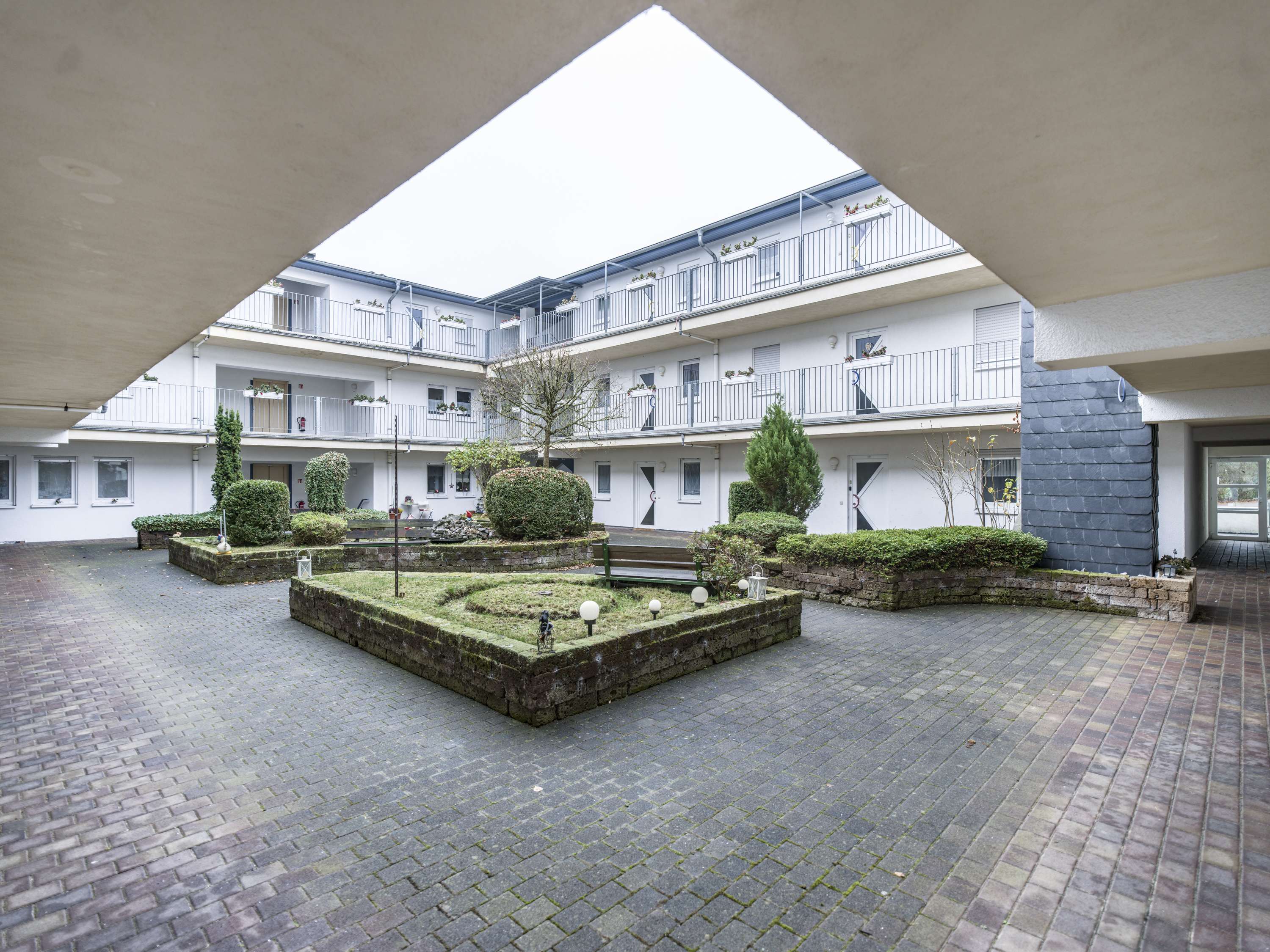 Ein besonderes Highlight ist der liebevoll begrünte Innenhof im Atriumstil mit mediterranem Flair, der der Anlage eine ruhige und angenehme Atmosphäre verleiht. Ein Fitnessraum sowie ein Hausmeisterservice stehen den Mietern exklusiv zur Verfügung. Im Erdgeschoss ergänzen eine Hausarztpraxis und eine Senioren-Tagespflege das Angebot vor Ort sinnvoll.