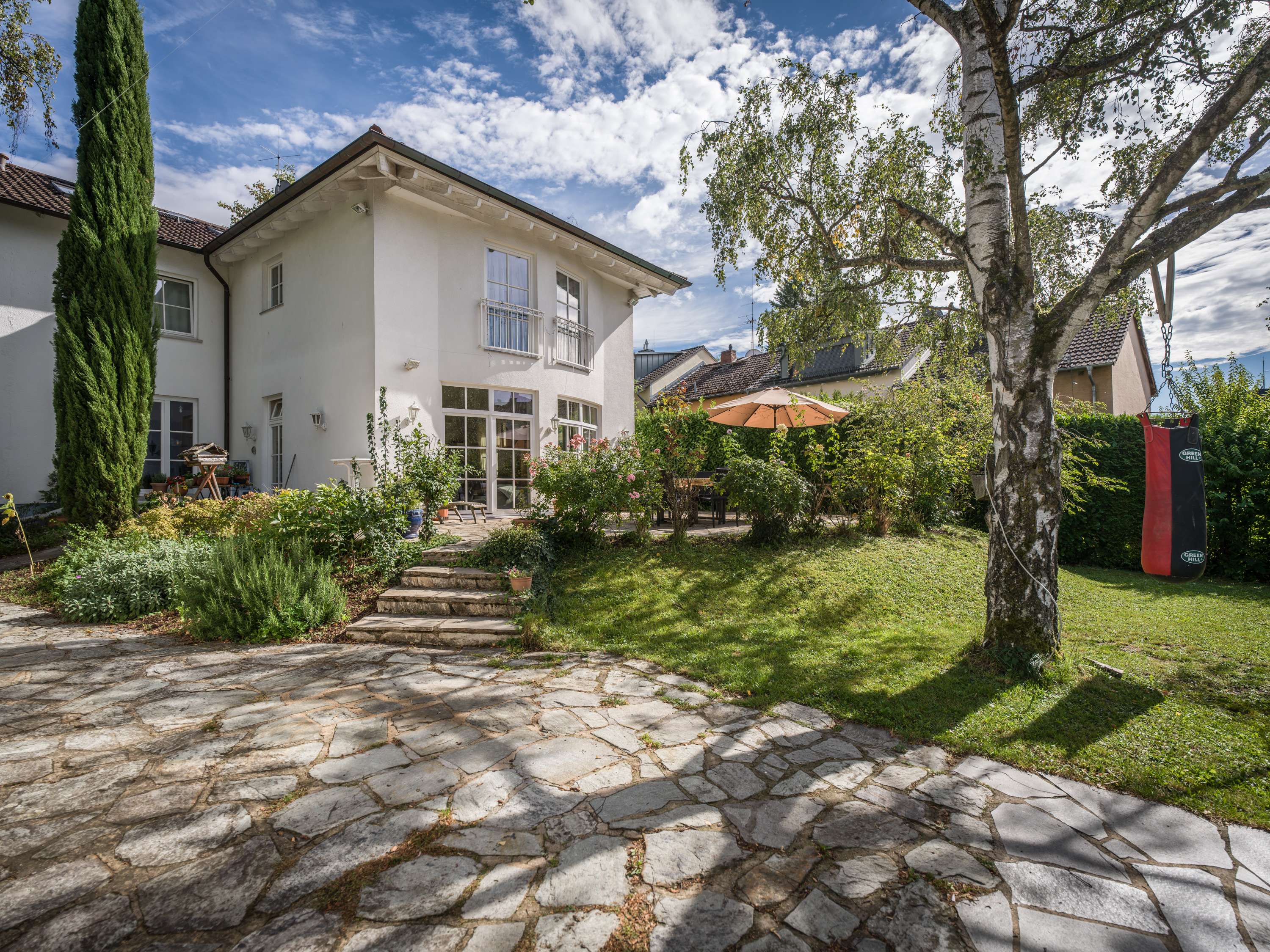 Das Haus wurde im Jahr 2000 kernsaniert und durch einen Anbau vergrößert. - 3 Bäder - offener Kamin - bodentiefe Holzfenster - Fußbodenheizung - Energiesparheizung - 10.000l Regenwassertank - Garage, 3 Stellplätze