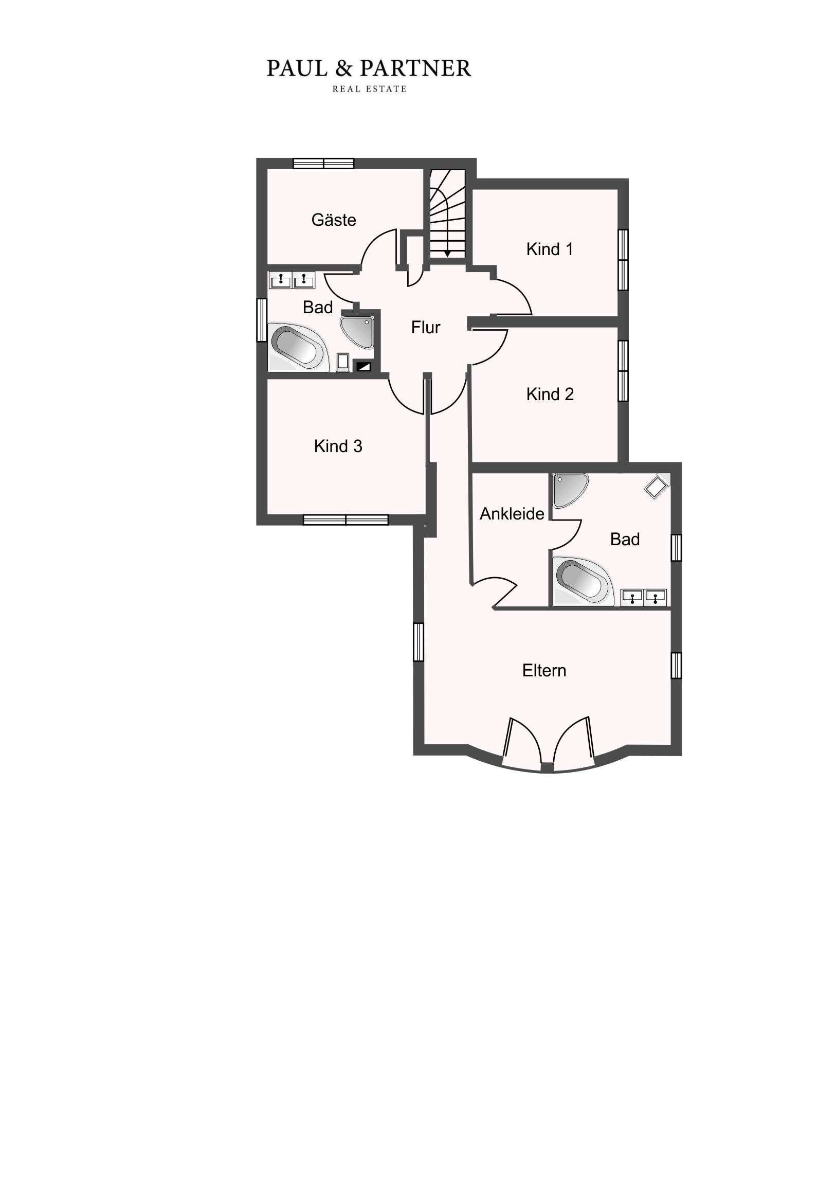 Im Obergeschoss befinden sich 5 große Schlafzimmer und ein Bad für Kinder und/oder Gäste, sowie ein separater Elternbereich mit Schlafzimmer, Ankleide und eigenem Bad. Das ausgebaute Dachgeschoss und der Keller mit Zugang zum Garten bieten zusätzlichen Platz. Das Grundstück ist vollständig umzäunt, schön eingewachsen und mit einer elektrischen Toranlage gesichert. Eine Garage, ein Fahrradschuppen und 3 PKW-Stellplätze machen das Parken stressfrei.