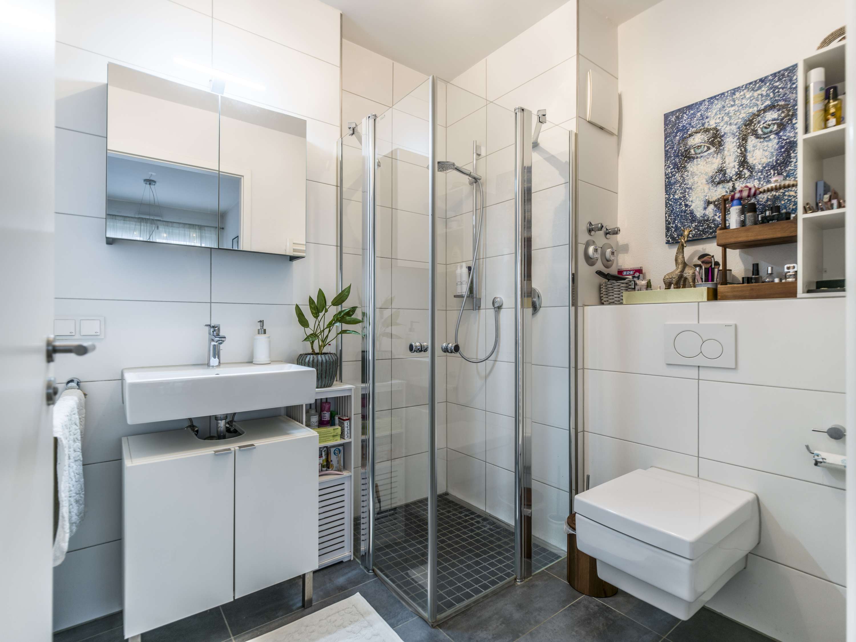 Ein weiterer Pluspunkt ist der Kellerraum, der zusätzlichen Stauraum für alles bietet, was nicht täglich gebraucht wird. Abgerundet wird das Angebot durch einen Duplex-Stellplatz, der komfortables Parken ermöglicht und den Alltag zusätzlich erleichtert.