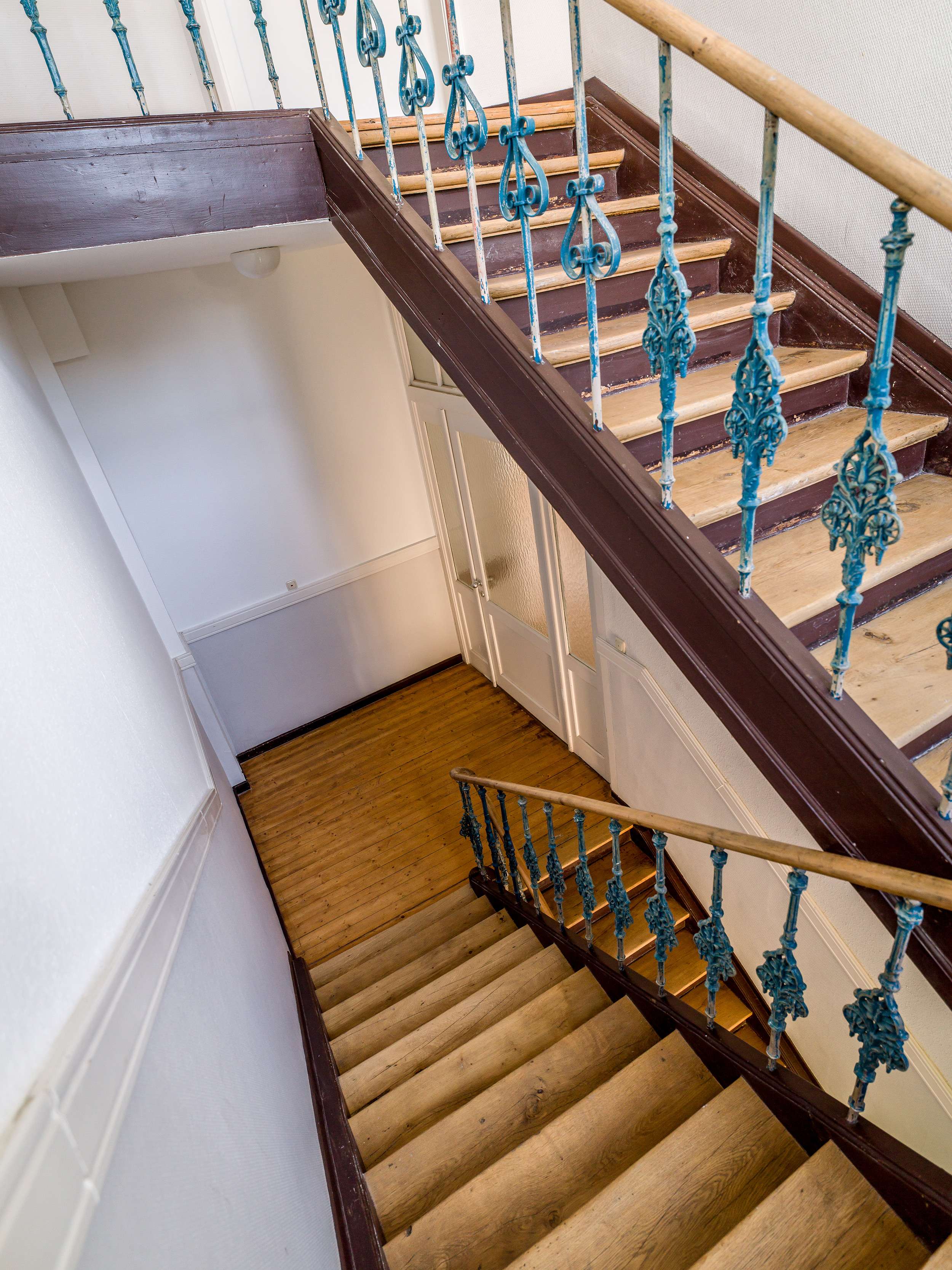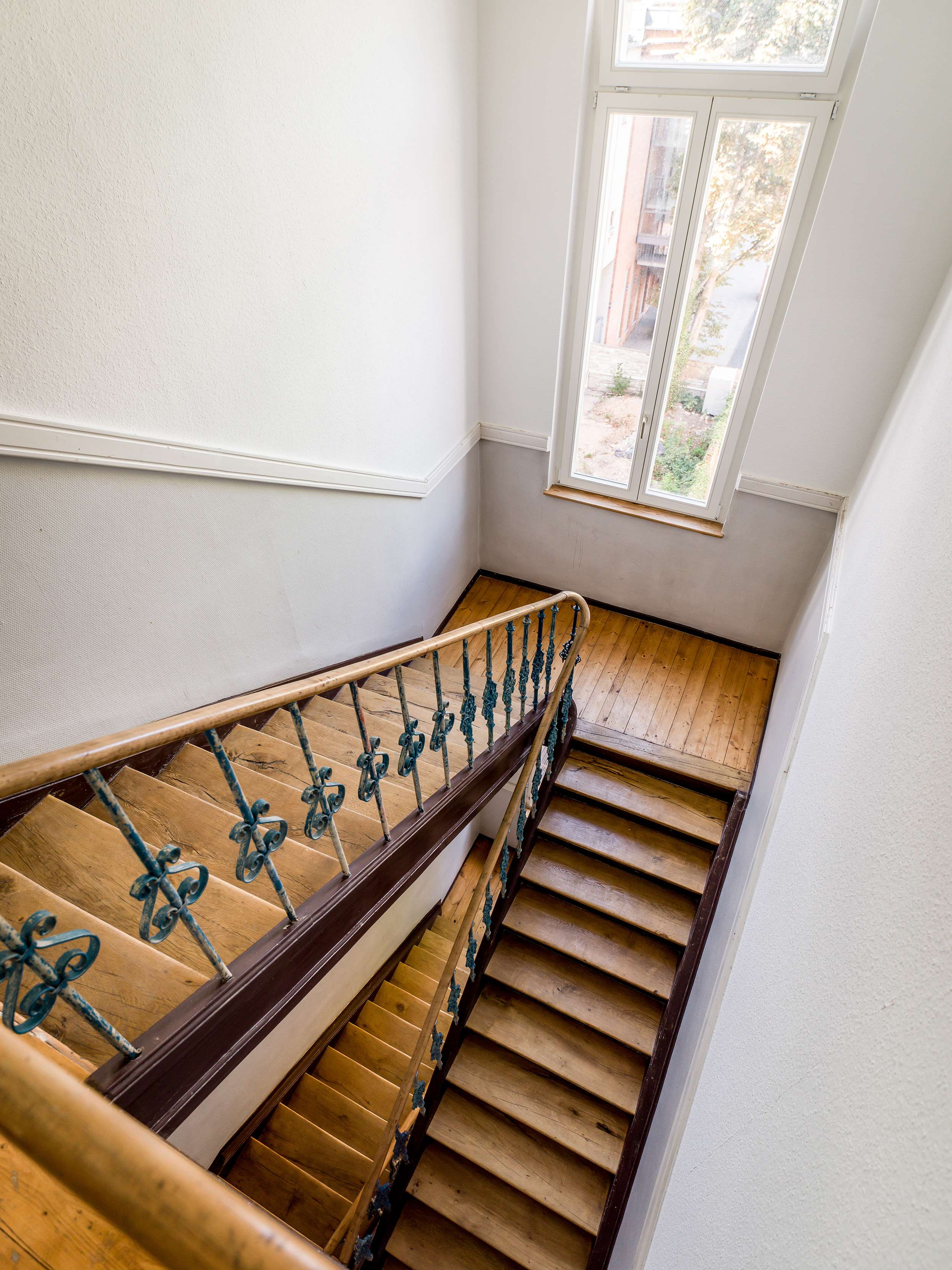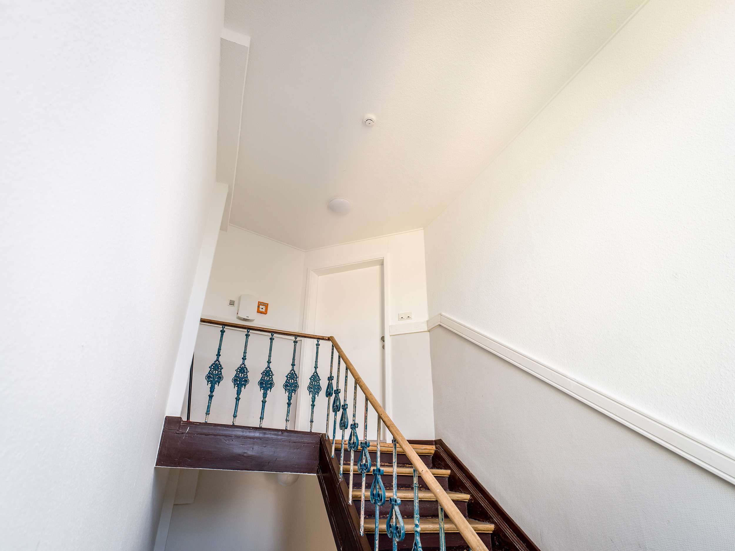 Sie erreichen die Wohnung durch das Treppenhaus, dass von seinem Altbaucharme geprägt wurde.