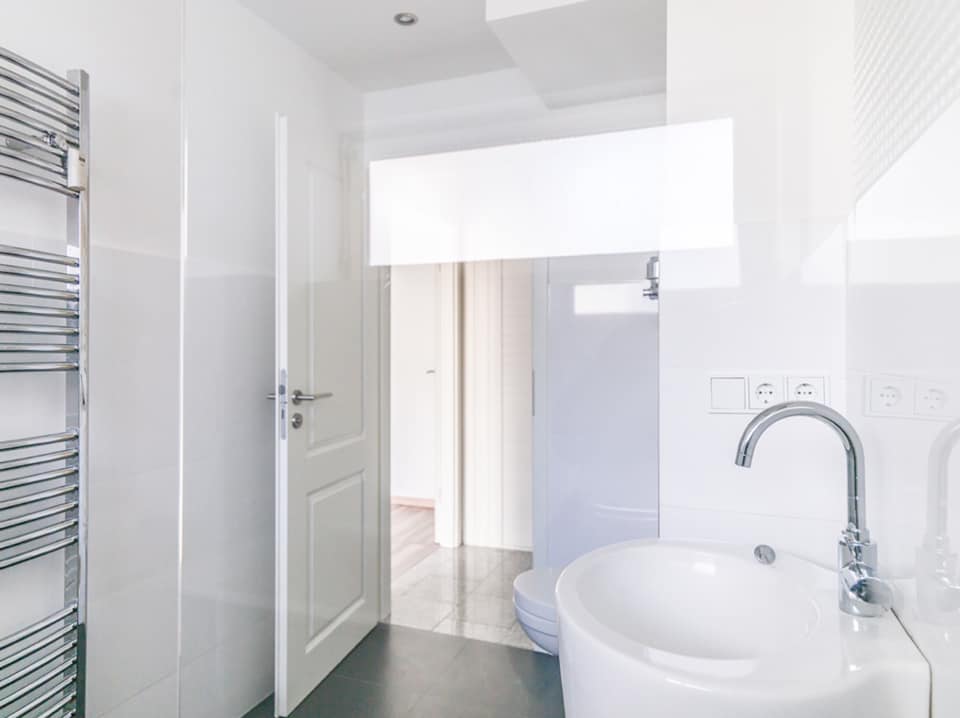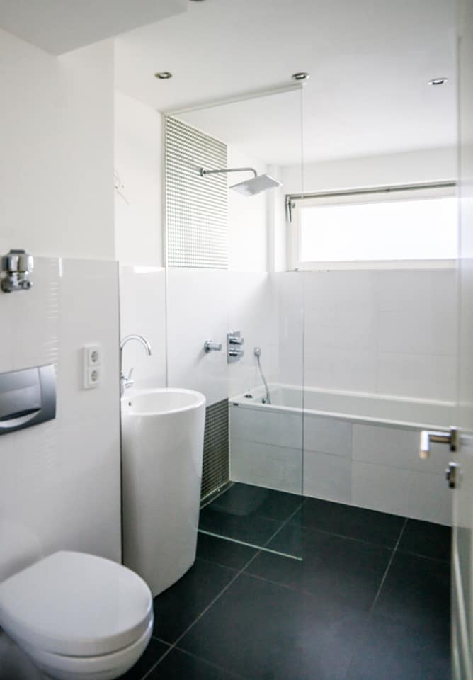 Diese Wohnung bietet nicht nur ein Wohnzimmer mit ca. 40 m² sondern man hat von diesem aus, sowie aus allen Schlafräumen, einen direkten Zugang auf die einladenden Terrassen. Das Badezimmer überzeugte mit seiner sehr ansprechenden Optik, einer Dusche und Badewanne.